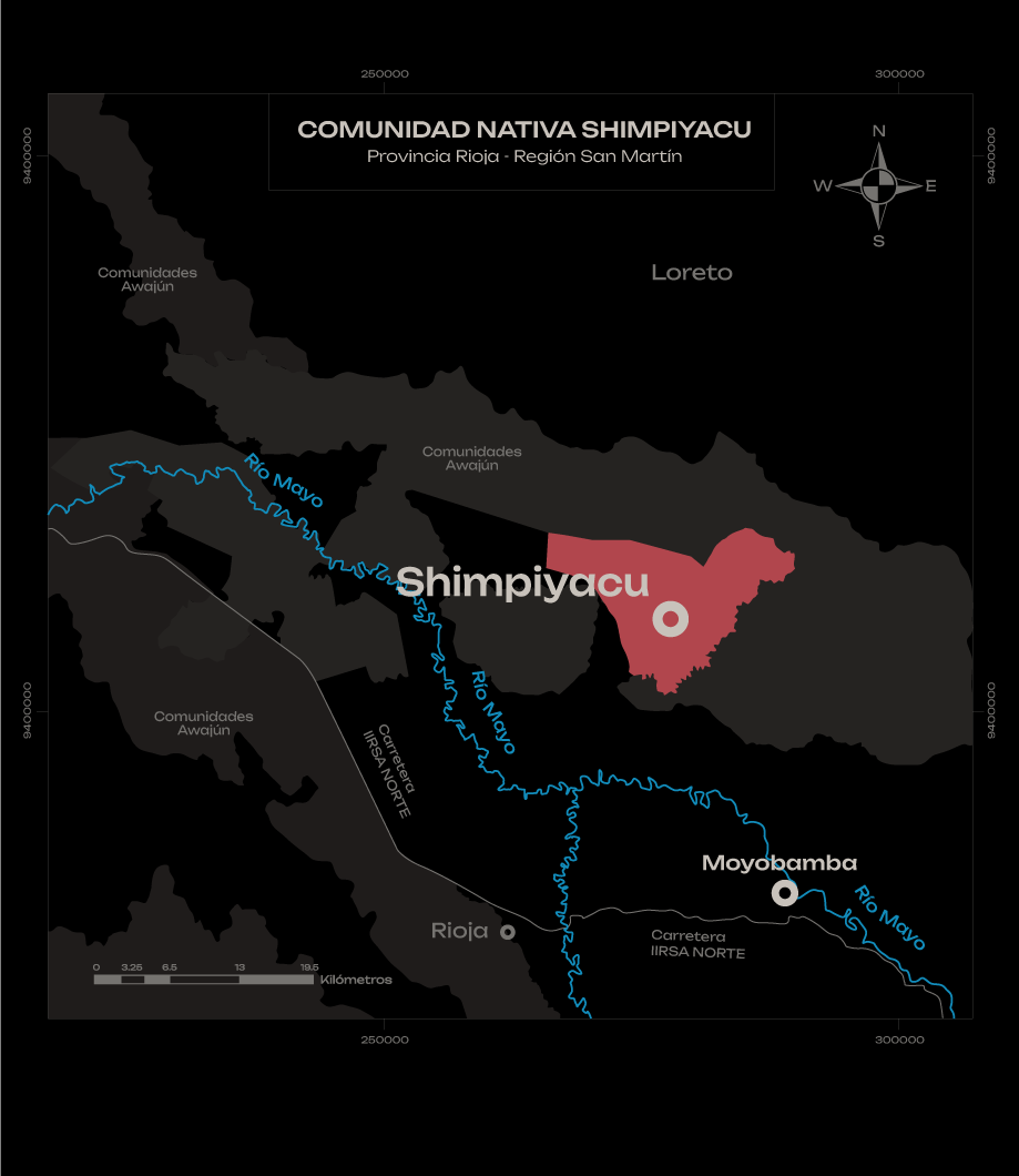 Shimpiyacu es una comunidad nativa awajún que se encuentra en la márgen izquierda del río Mayo. Los awajún son el segundo pueblo originario más numeroso del país, detrás de los asháninka. Shimpiyacu cuenta con una extensión de más de 15 mil hectáreas y se calcula que viven aquí unas 800 personas.